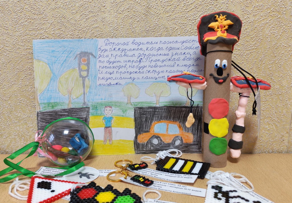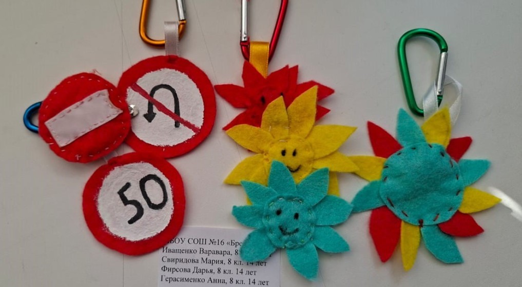 Брелоки из фетра и биссера, выполненные воспитанниками общеобразовательного учреждения № 16 и коррекционной школы-интерната, напомнят водителям и пешеходам о неукоснительном соблюдении Правил дорожного движения.