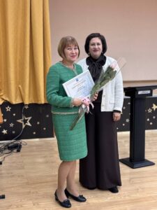 Одной из награждённых стала Анна Юрьевна Выручалкина — учитель русского языка и литературы, работающая в школе уже 24 года. Высокий уровень подготовки её учеников подтверждается результатами итоговой аттестации: один из её воспитанников в 2025 году набрал заветные 100 баллов по русскому языку! Этот успех — результат не только знаний, но и той любви к предмету, которую Анна Юрьевна передаёт своим ученикам.