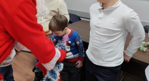 Праздничную атмосферу дополнили игры и конкурсы. Дед Мороз выслушал новогодние стихи и песни, разрешил каждому ребенку заглянуть в большой красный мешок, принесенный с собой, и взять оттуда подарок.