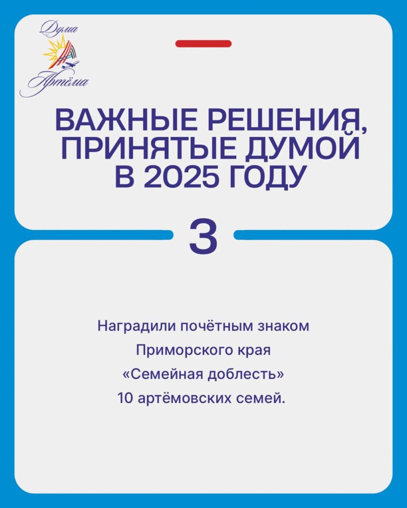 / В Думе Артёма начался прием документов от семейных пар для награждения почётным знаком Приморского края «Семейная доблесть»