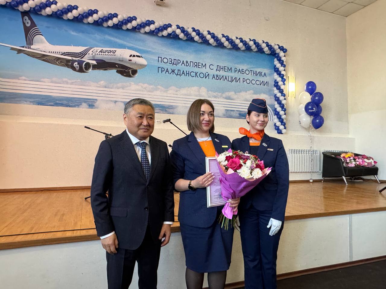 Заслуженные награды авиаторам вручали глава Артёма Вячеслав Квон; председатель Думы Наталья Волкова, директор Приморского филиала АО «Авиакомпания «Аврора», заслуженный пилот Российской Федерации Виктор Крючков, и депутат Законодательного Собрания Приморского края Константин Сиденко.