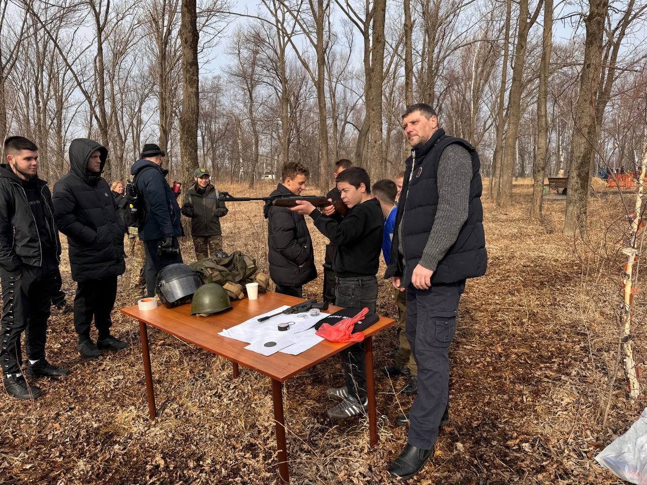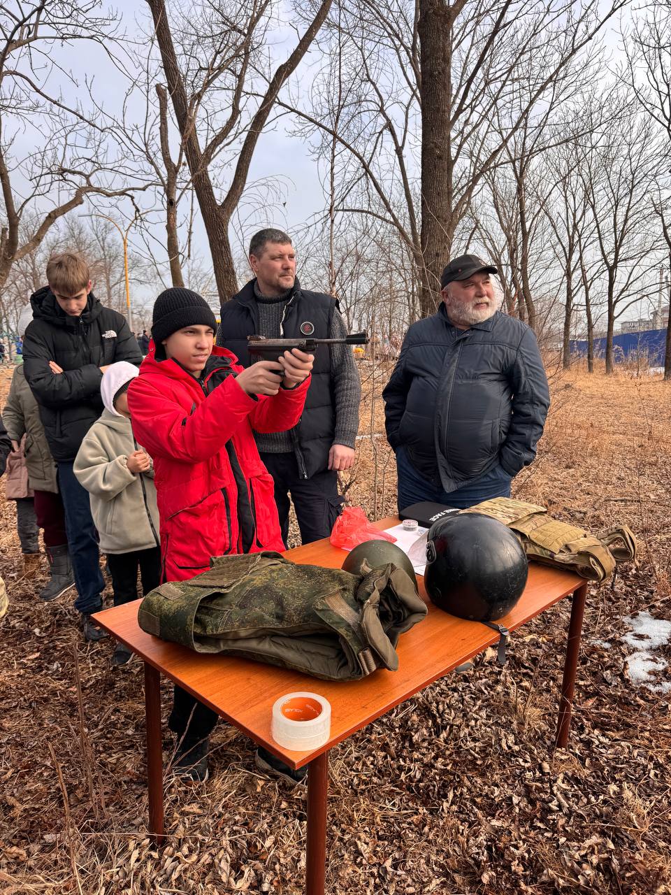 Алексей Михайленко, депутат Думы Артёма и председатель общественной организации ветеранов территориального управления шахты «Амурская», принял участие в мероприятии вместе с ветеранами. Они организовали площадку, где все желающие могли попробовать свои силы в стрельбе из пневматического оружия (пистолет и винтовка).