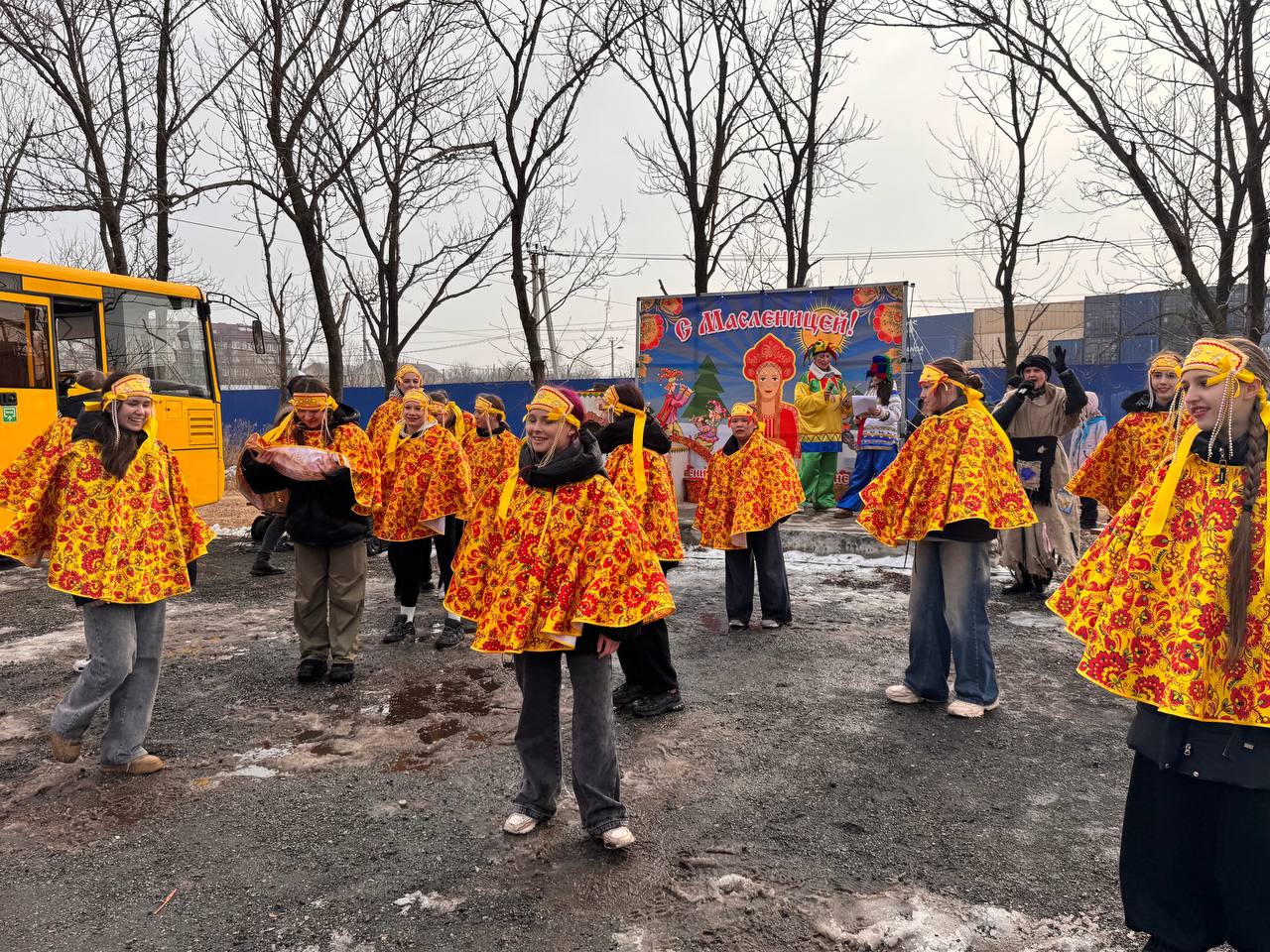 На празднике гостей ждали любимые персонажи русских сказок, увлекательные конкурсы, забавы и, конечно же, традиционные блины с горячим чаем.