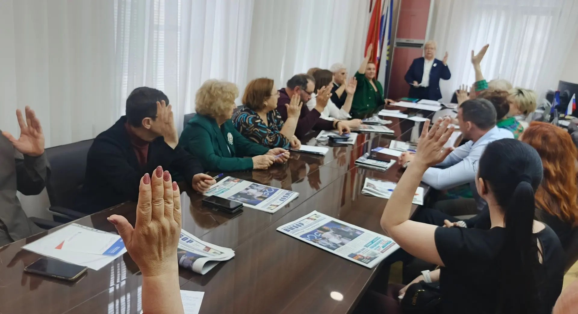 На первом заседании члены общественной палаты выбрали нового председателя. На смену опытному лидеру Валентине Константиновне Юрищевой, возглавлявшей общественную палату последние три года, пришла известная в Артёме активистка и общественный деятель директор автономной некоммерческой организации «ПоколениЯ» Юлия Владимировна Тимошенко. Валентина Юрищева единогласным решением членов палаты была избрана заместителем председателя.